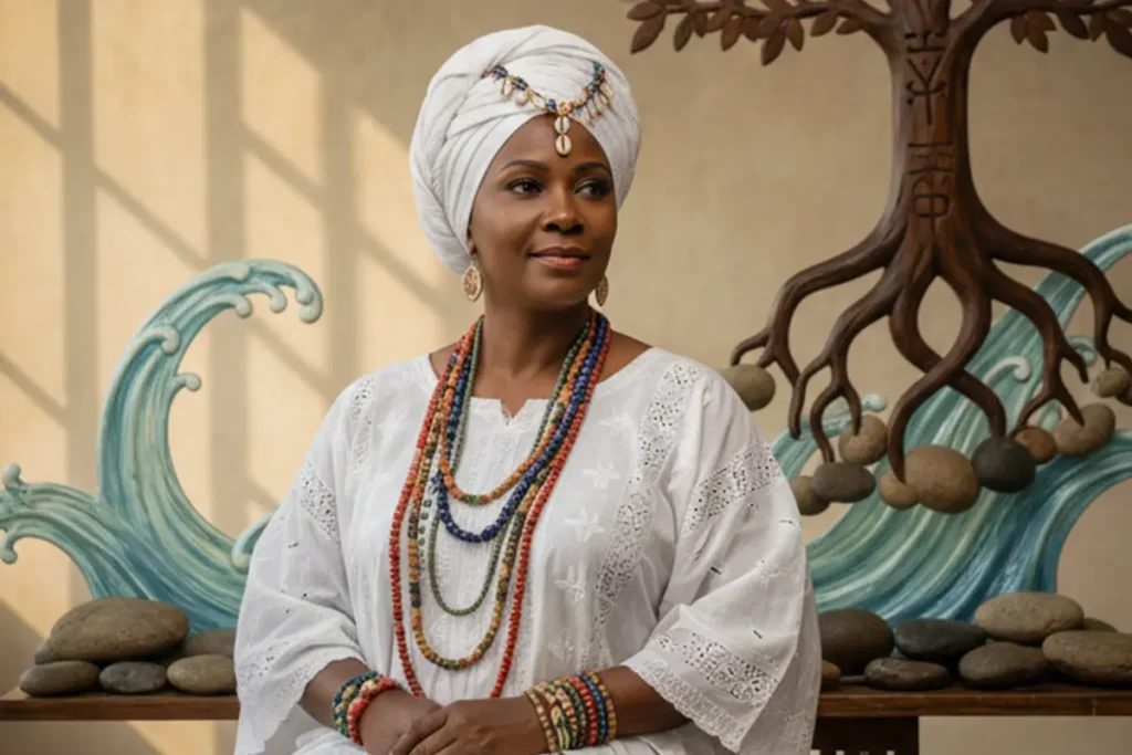 En cada gesto cotidiano —una oración, una sonrisa, un consejo— la mujer reafirma que el Ashé fluye a través del amor y del servicio.